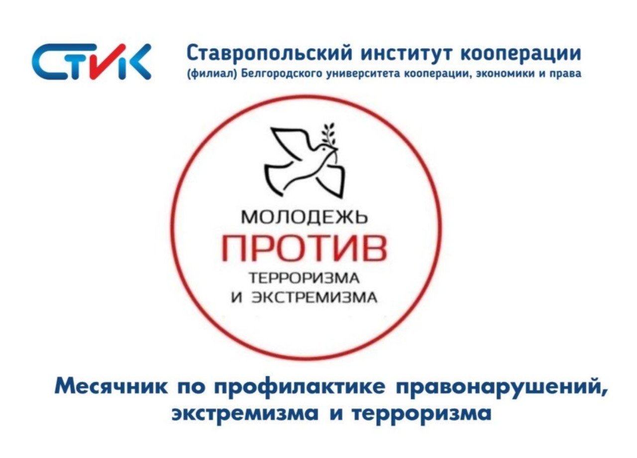 С 1 по 30 апреля 2026 года в Ставропольском институте кооперации (филиале) БУКЭП проводится тематический месячник по профилактике правонарушений, терроризма и экстремизма в молодежной среде.