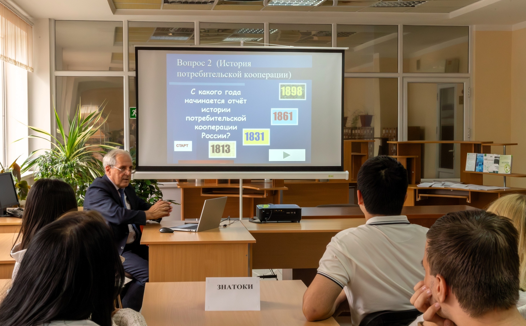 * Организаторами викторины выступили: заведующий кафедрой социально-гуманитарных дисциплин, кандидат педагогических наук Светлана Анатольевна Павленко, доктор исторических наук, доцент Лариса Викторовна Печалова, кандидат исторически наук, доцент Анастас Константинович Печалов, кандидат политических наук, доцент Халида Аюбовна Сатучиева.