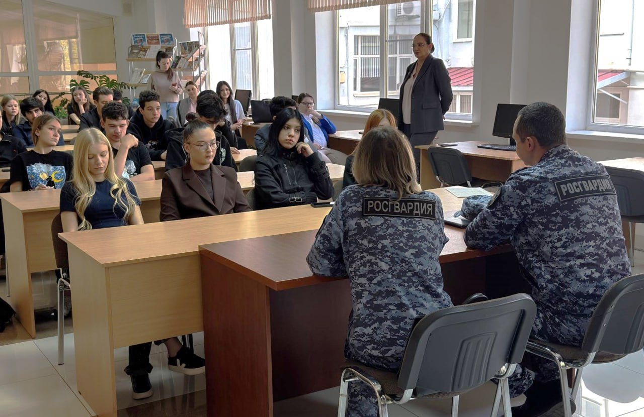 ✅В институте прошла встреча с представителями ФГКУ «Управление вневедомственной охраны войск национальной гвардии РФ по Ставропольскому краю». Заместитель командира роты полиции, лейтенант полиции Роман Александрович Шалаев и заместитель командира взвода, старший сержант полиции Надежда Юрьевна Литвинова рассказали о возможностях трудоустройства в подразделения Росгвардии.
