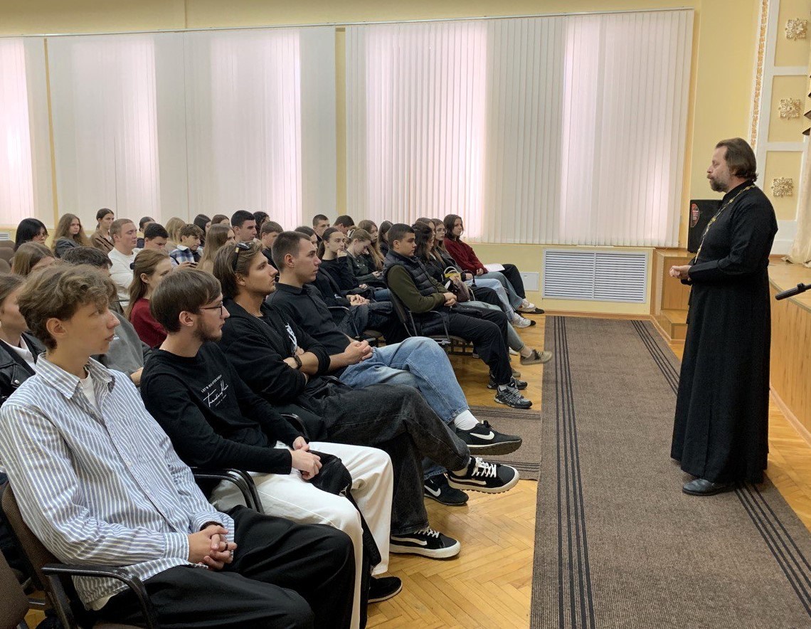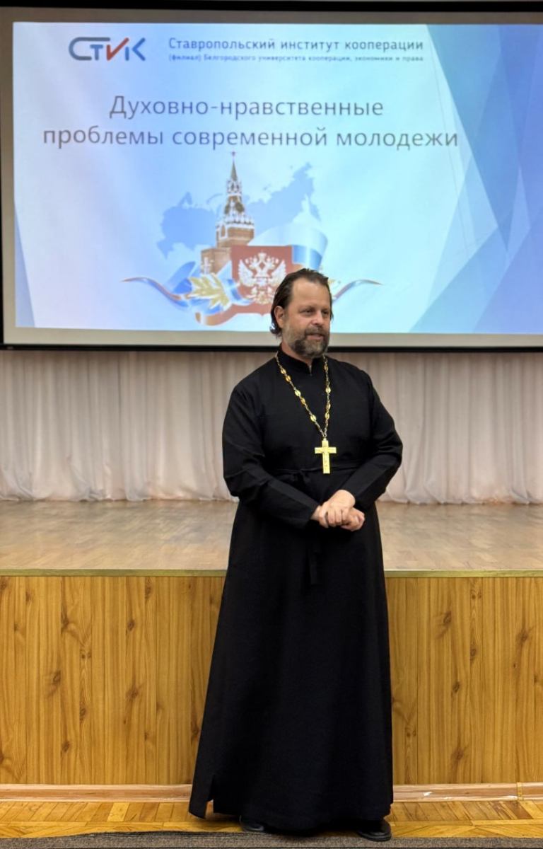 Поговорить о духовно-нравственных проблемах современной молодежи предложил первокурсникам Ставропольского института кооперации протоиерей Владимир Алексеевич Острожинский.