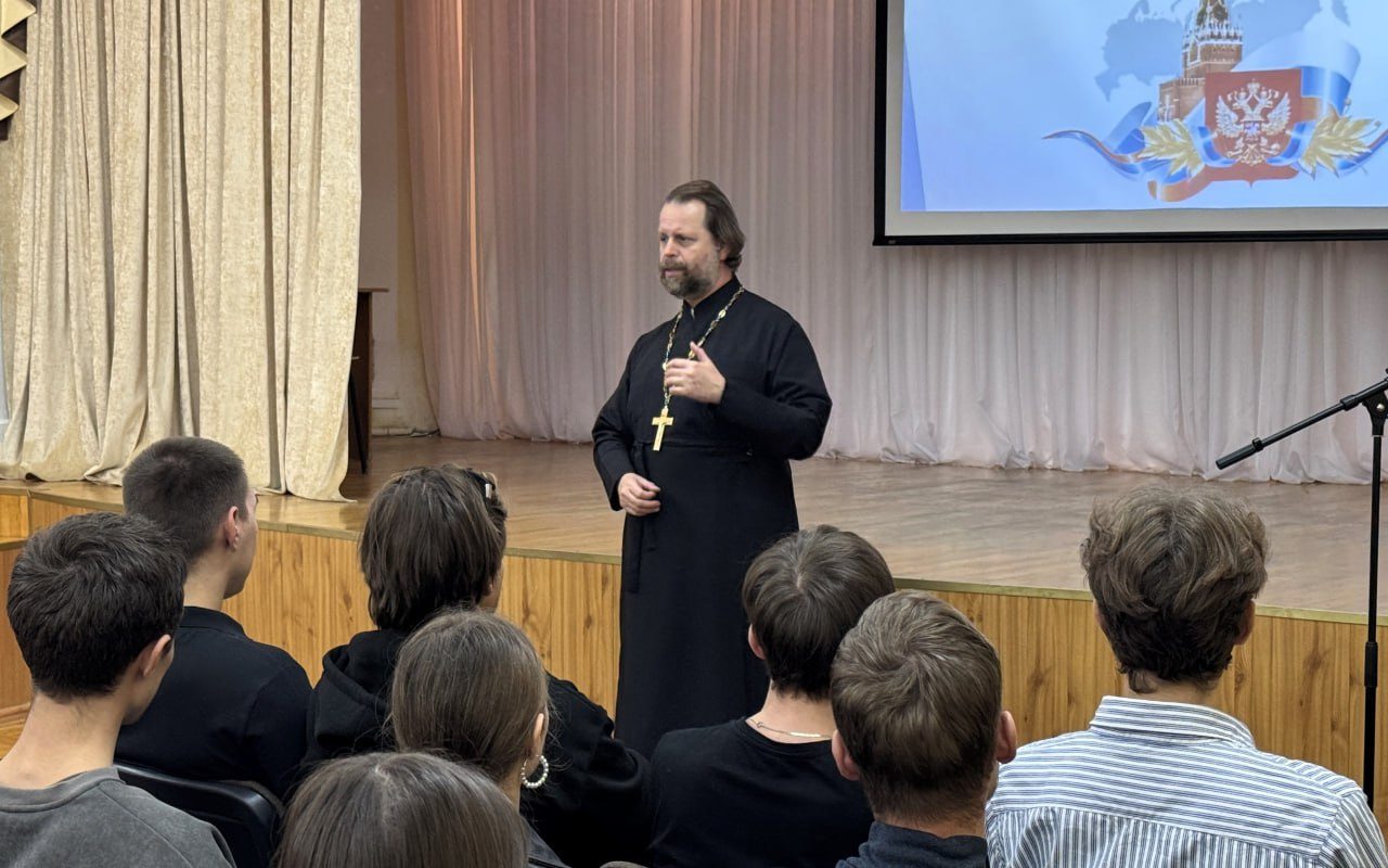 Отец Владимир затронул важные вопросы: в чем заключается нравственный облик верующего человека и какие ценности стремится передать молодому поколению культурное наследие православия.