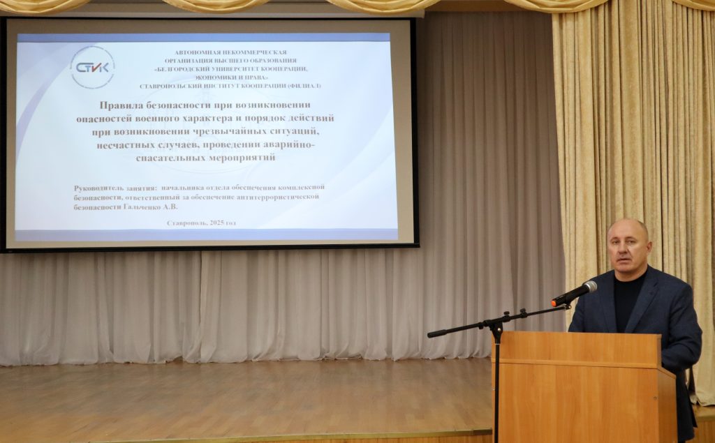 С 29 по 31 октября 2025 года учебно-методическим центром дополнительного образования Ставропольского института кооперации (филиала) БУКЭП организовано и проведено обучение студентов института по дополнительной общеобразовательной общеразвивающей программе «Начальная подготовка в области гражданской обороны и защиты от чрезвычайных ситуаций (ГО И ЧС)».