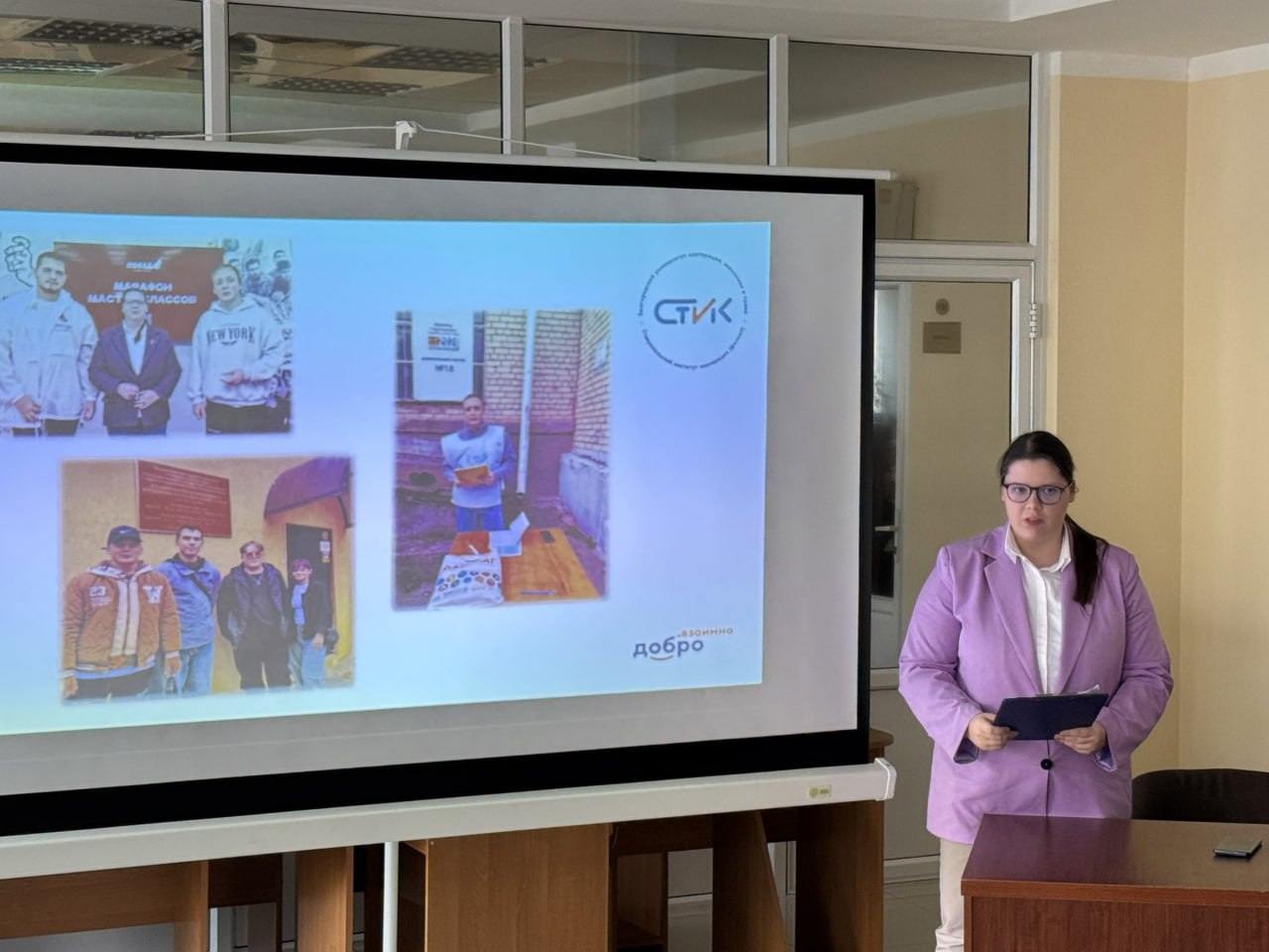 🫶 Заместитель председателя волонтёрского отряда «Альтруист» Ксения Симонова поделилась историями о добрых делах, которые совершили студенты института в прошлом учебном году, и пригласила первокурсников к участию в деятельности отряда.
