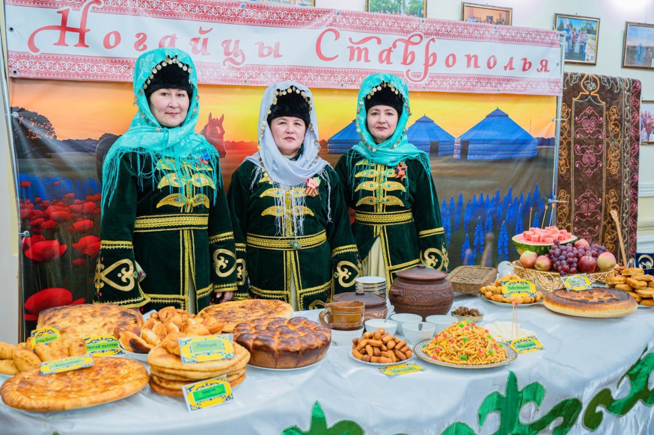В фойе работала фотовыставка, посвященная семейным ценностям «Семейный альбом». Здесь же гости могли продегустировать блюда ногайского, туркменского, дагестанских народов.