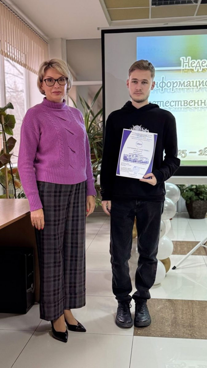 На закрытии Недели кафедры особо отличившимся студентам вручили благодарности, грамоты и сертификаты. Декан финансово-экономического факультета, кандидат экономических наук Алина Анатолиевна Чалова поблагодарила всех за участие и вклад в проведение Недели кафедры.