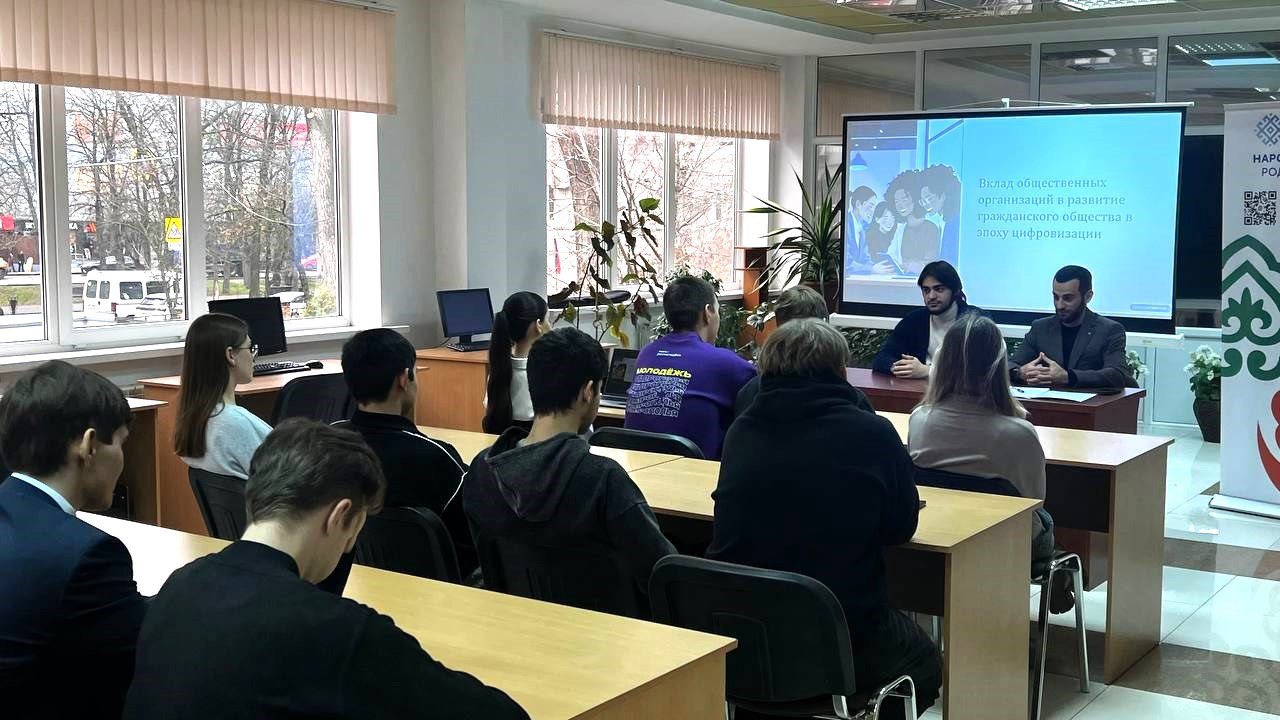 Представители регионального отделения Общероссийской общественно-государственной организации «Ассамблея народов России» по Ставропольскому краю Магомед Казимагомедович Джангишиев и Ризван Магомедрасулович Магомедов провели встречу, посвященную вкладу общественных организаций в развитие гражданского общества в эпоху цифровизации. Участники обсудили роль студенческой молодёжи и будущих юристов в построении гражданского общества.