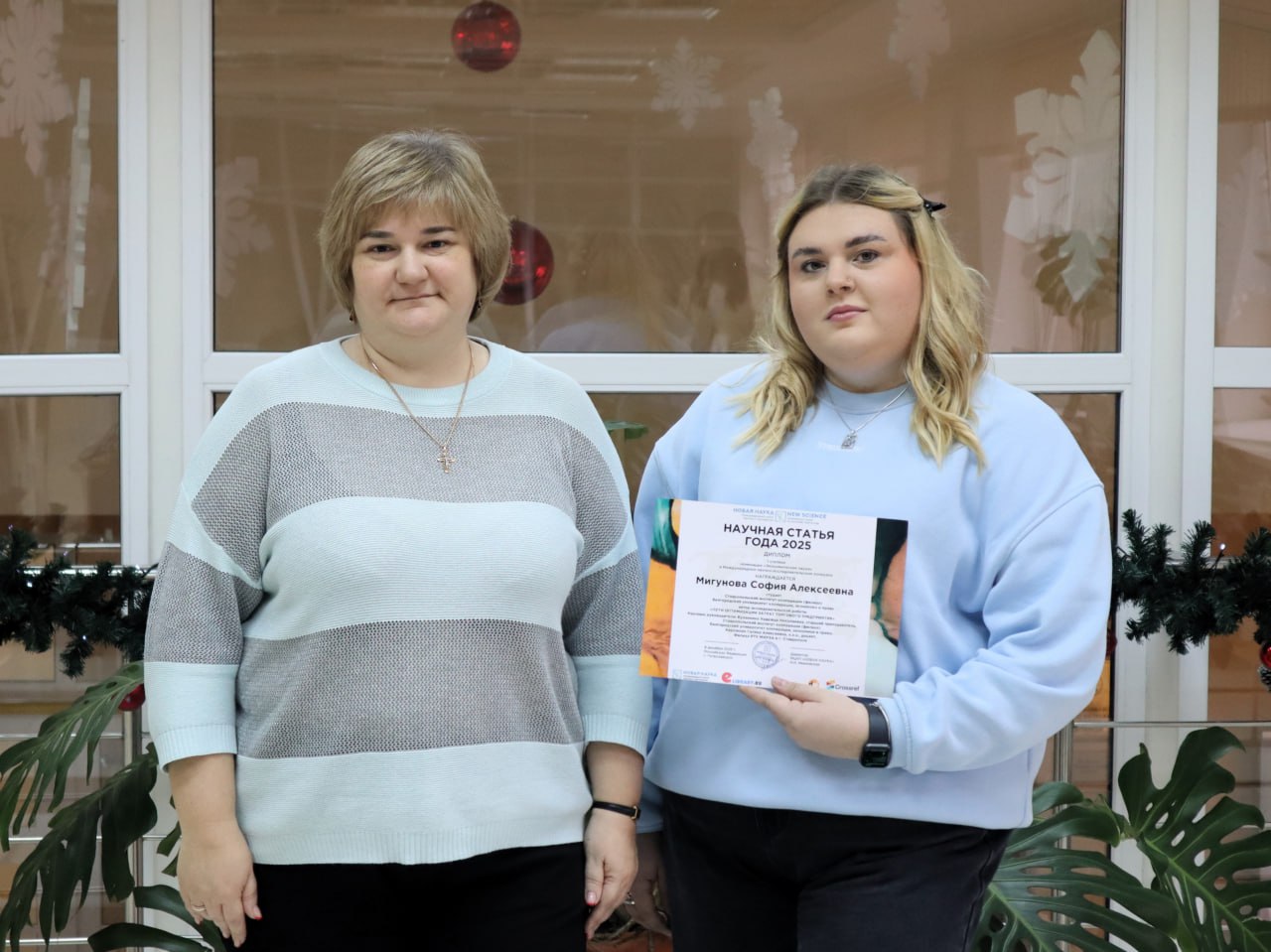 🎯 Студентка группы ЭК-С241 София Мигунова завоевала диплом I степени в номинации «Экономические науки» Международного конкурса «Научная статья года-2025». Организатором состязания выступил Международный центр научного партнёрства «Новая наука» (г. Петрозаводск).
