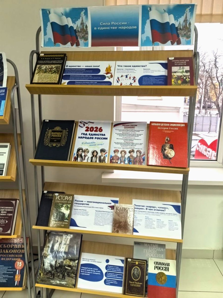 Экспозиция призвана напомнить о важнейшей ценности – сплочённости многонационального народа нашей страны. На выставке представлены издания, которые рассказывают о народах, населяющих Россию, раскрывают исторические и культурные основы единства нации, популяризируют общероссийские ценности, служащие фундаментом согласия и взаимопонимания.