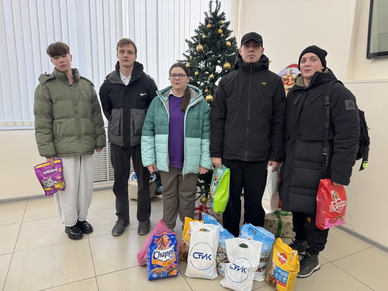 🐶 Центр социально-воспитательной работы института провел благотворительную акцию. Неравнодушные студенты собрали 25 килограммов корма для питомцев приюта, а также предметы для ухода за животными. Члены волонтерского отряда «Альтруист» передали подарки и помогли работникам приюта. Пройдя инструктаж, ребята выгуляли собак в Таманском лесу.