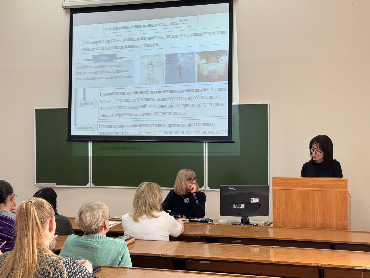 Заместитель директора по учебно-воспитательной работе, профессор Марина Дмитриевна Фоминская акцентировала внимание на значении гуманитарных знаний для формирования профессиональных качеств студентов. Профессор Людмила Анатольевна Келеман представила аргументы в пользу гуманитарно-антропологического подхода, продемонстрировав его потенциал для личностного и профессионального развития обучающихся.
