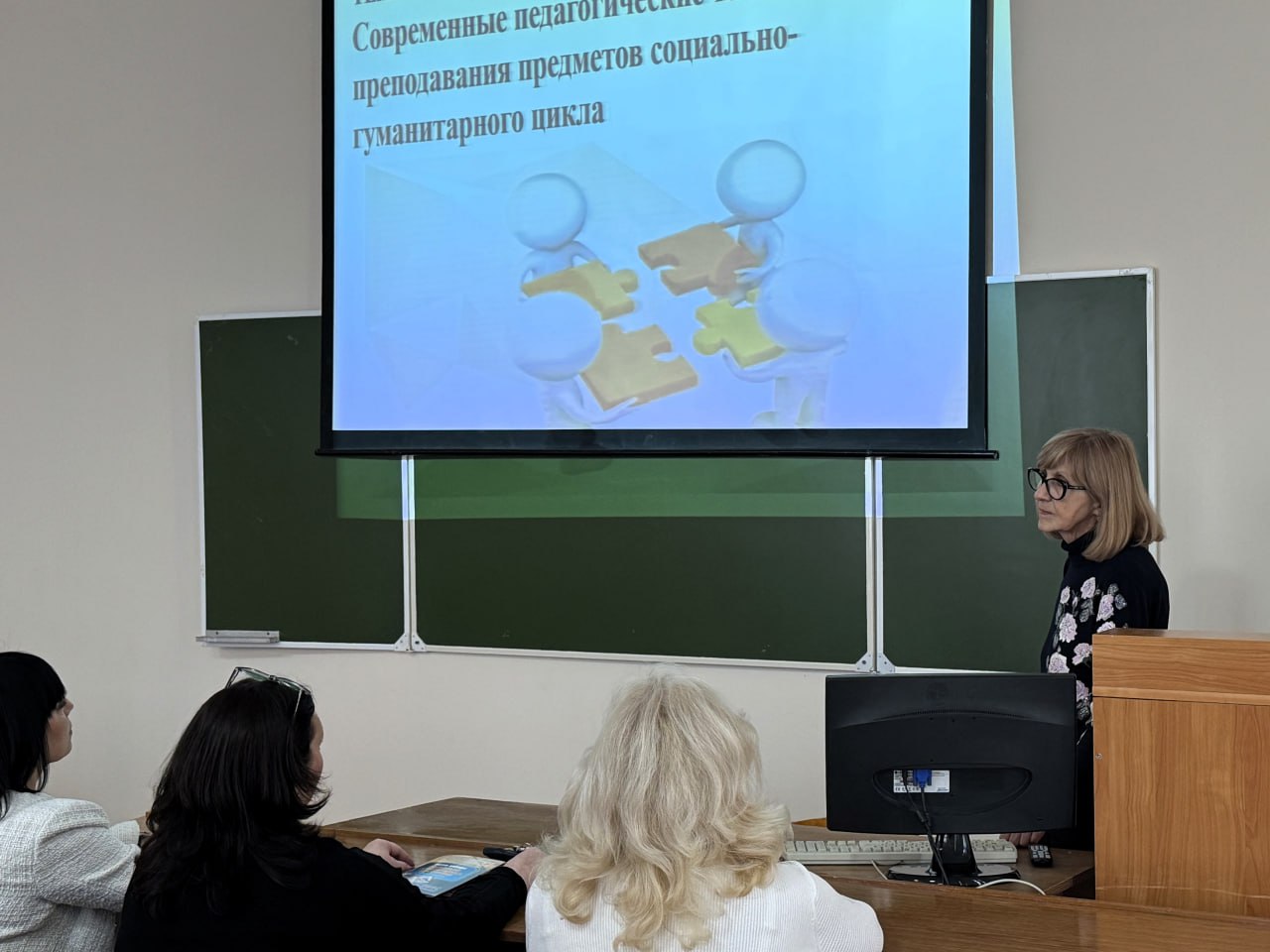 Профессор кафедры социально-гуманитарных дисциплин Людмила Анатольевна Келеман в рамках Недели кафедры провела заседание методического семинара, посвященное современным педагогическим технологиям преподавания, и открытую лекцию по теме «Античная философия».