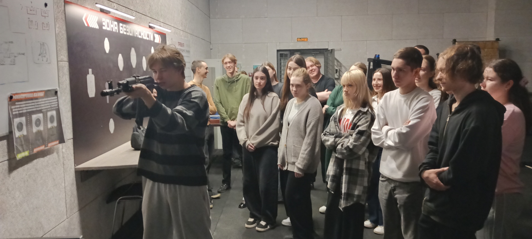 В заключении было проведено занятие по огневой подготовке в интерактивном тире, где ребята познакомились с правилами прицеливания и применили полученные знания в стрельбе из лазерных пистолетов.