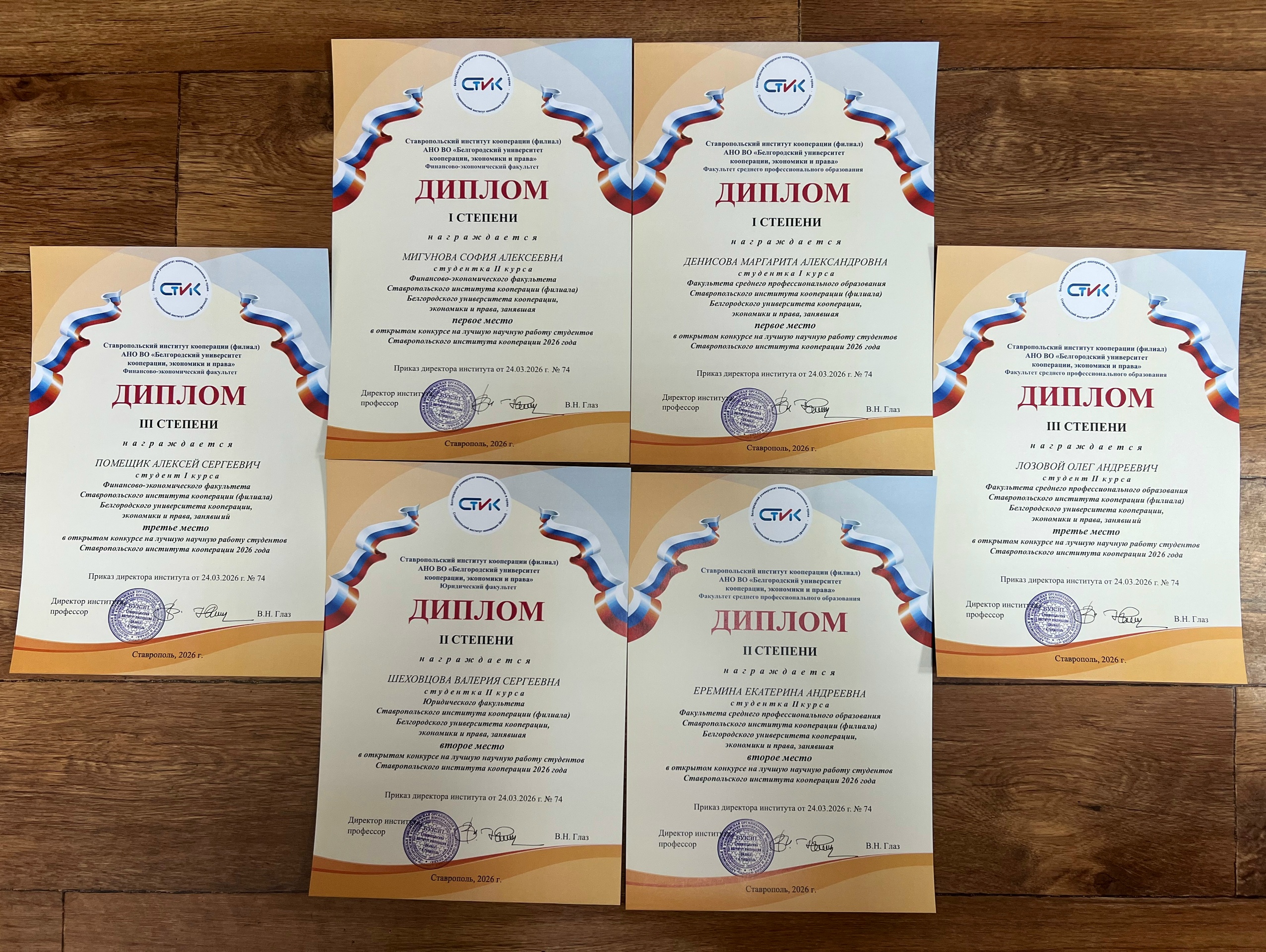 С 10 по 20 марта 2026 года в Ставропольском институте кооперации прошел ежегодный открытый конкурс «На лучшую научную работу студентов Ставропольского института кооперации (филиала) БУКЭП». Мероприятие состоялось в рамках реализации Плана научно-исследовательской работы вуза.