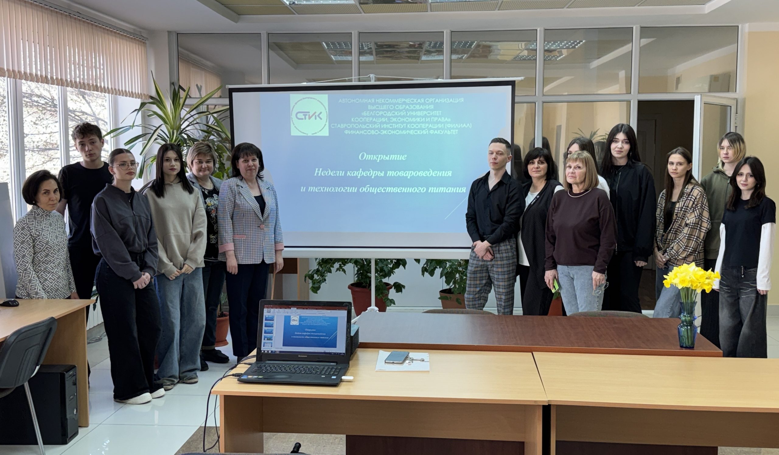 В рамках открытия Недели кафедры прошло приветственное мероприятие с участием декана финансово-экономического факультета, доцента Алины Анатолиевны Чаловой, и.о. заведующего кафедрой товароведения и технологии общественного питания доцента Нины Владимировны Трегубовой, профессорско-преподавательского состава, приглашенных гостей и студентов.