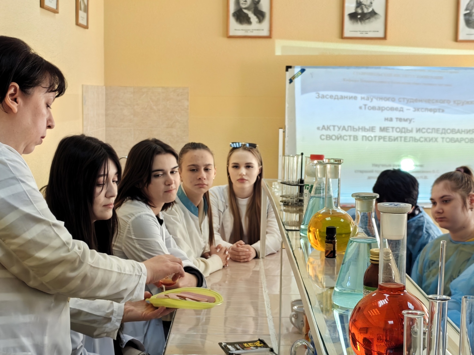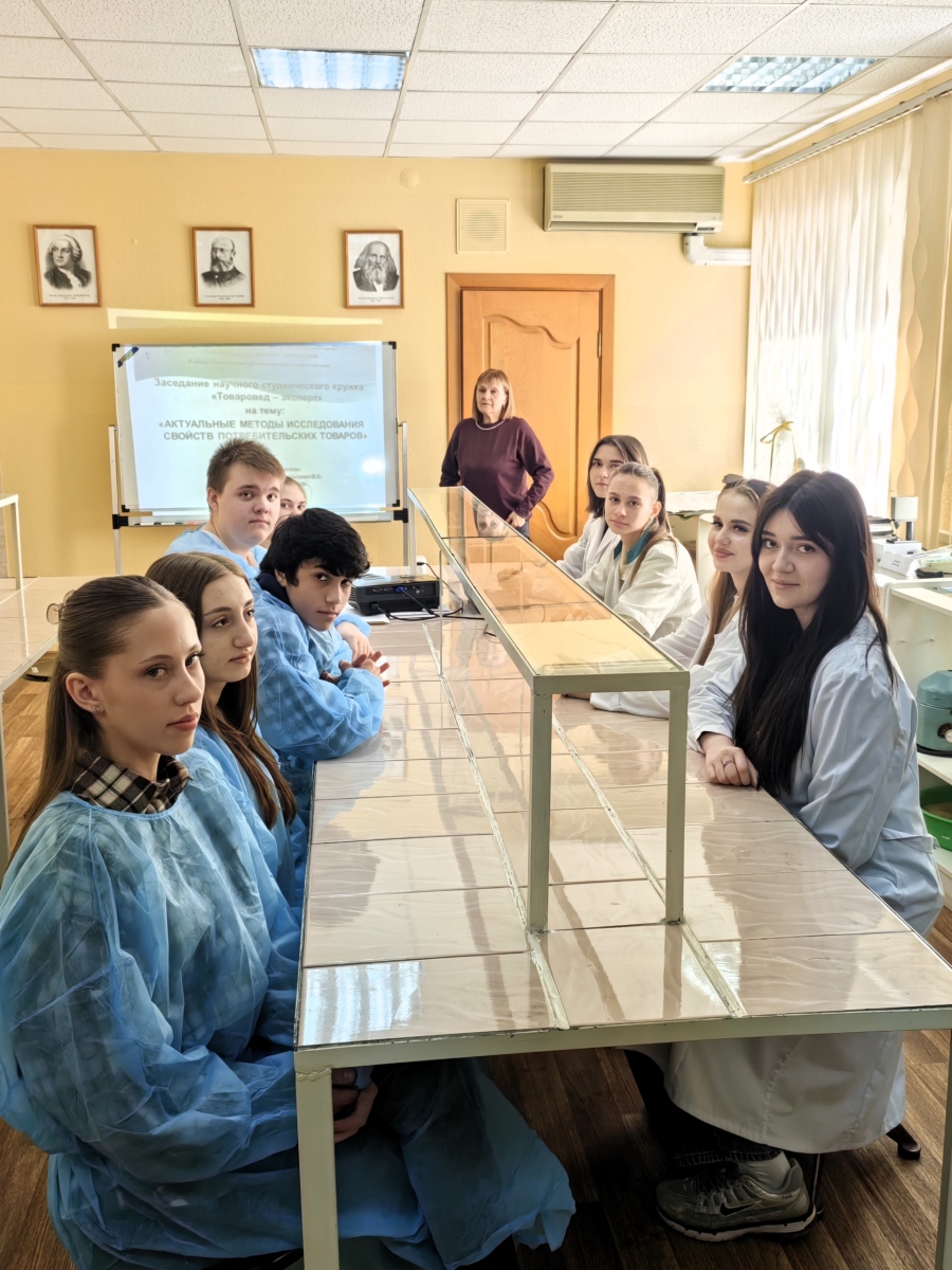 Встреча, которую провели научный руководитель кружка — старший преподаватель Валентина Семёновна Денисенко — и доцент кафедры Нина Владимировна Трегубова, была посвящена актуальным методам исследования свойств потребительских товаров. В обсуждении участвовали студенты групп ТОР‑С241 и ТОР‑С251, а также приглашенные гости — учащиеся Центра образования имени героя России В. Духина.