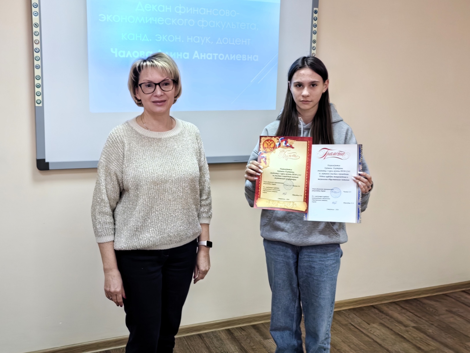 Завершилась Неделя кафедры торжественным подведением итогов. Декан финансово-экономического факультета, доцент Алина Анатолиевна Чалова вручила активным участникам и победителям конкурсов грамоты.