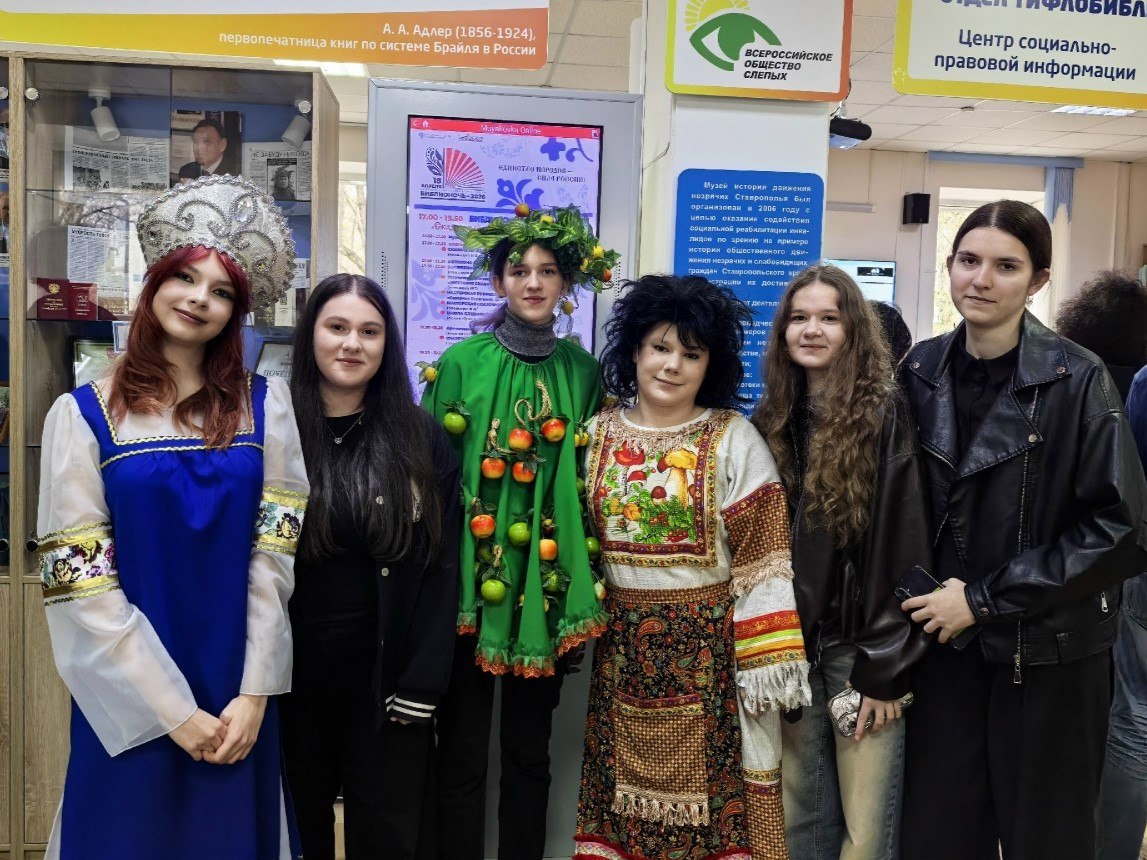 В рамках Всероссийской акции «Библионочь-2026» в Ставропольской краевой библиотеке для слепых и слабовидящих имени В. Маяковского состоялась социокультурная акция «Библиосумерки-2026: Сказочный разгуляй в Мяковке». Библиотека подготовила для гостей обширную программу, куда вошли и сказочная постановка от музыкального театра «Фантазеры», и выступление поэта Магомеда Мерзоева, и мастер-класс от диктора Андрея Долженко.