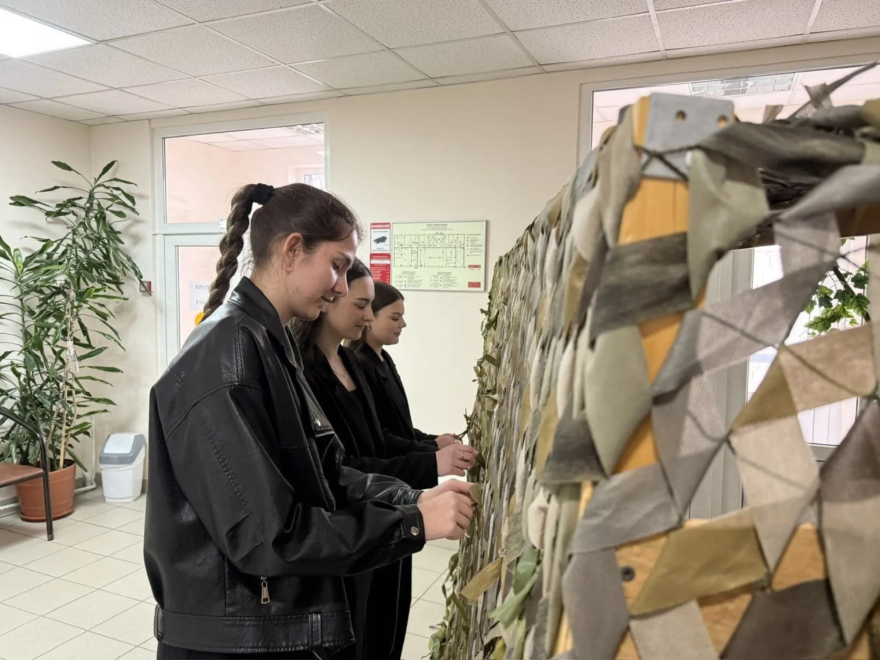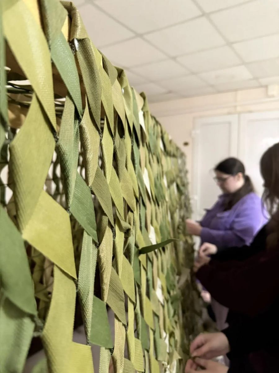 Студенты юридического факультета с большим энтузиазмом включились в общее дело. Благодаря их усилиям работа над большой маскировочной сетью подходит к завершению.